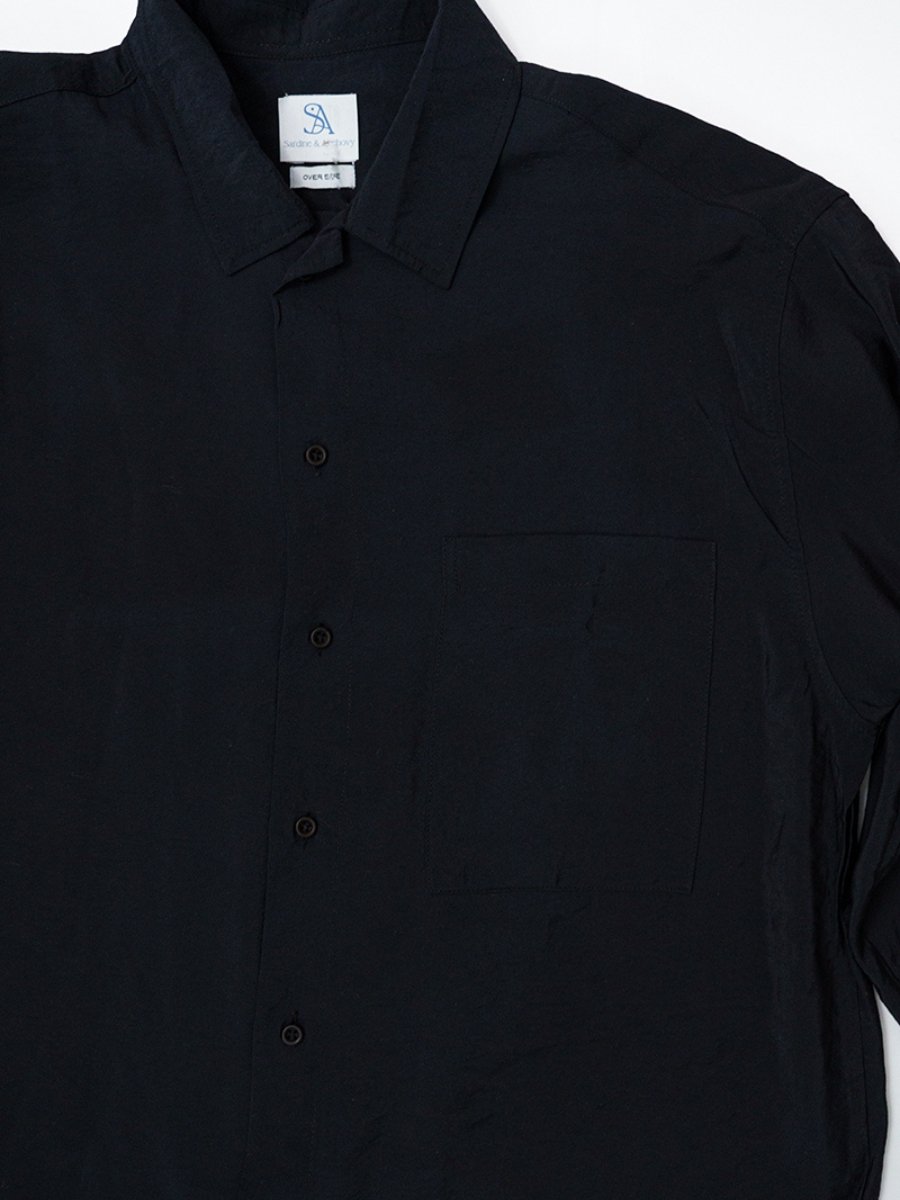 Μαύρο oversize βαμβακερό πουκάμισο με ελαφριά γυαλάδα, ανοιχτή τσέπη στο στήθος, γιακά. Oversize για άνεση. Μακριά μανίκια με μανσέτες με κουμπιά. Ελαφρώς μακρύτερο στην πλάτη. 85% βαμβάκι 15% ελαστάν.