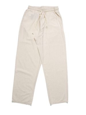 Μαύρο παντελόνι χαλαρής εφαρμογής από λινό μείγμα με καλυμμένο ελαστικό, κορδόνι περίσφιξης, φερμουάρ, 2 πλαϊνές τσέπες και τσέπη πίσω. Χαλαρή γραμμή και λινό για μέγιστη άνεση, αναπνοή και μείγμα με βισκόζη από ξυλοπολτό για απορρόφηση και τέλειο σχήμα. Ελαφρύ τέντωμα για επιπλέον άνεση. 90% λινό 10% βισκόζη.