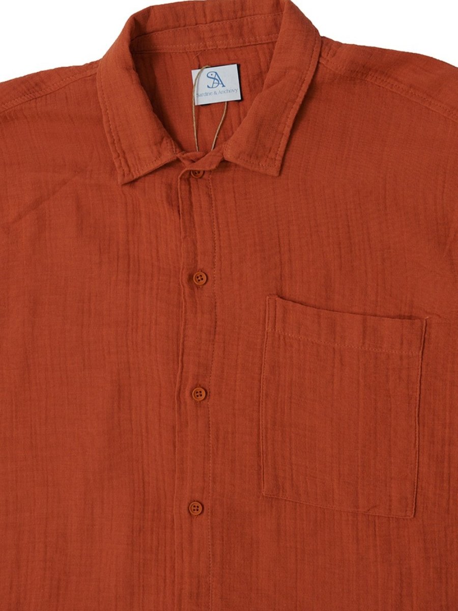 Ταμπά oversize πουκάμισο από μουσελίνα με γιακά, μπροστινή τσέπη στο στήθος και κουμπιά ίδιου χρώματος. 100% βαμβάκι. Φαρδιά γραμμή και βαμβακερό για δροσιά και άνεση κατά τη διάρκεια της ημέρας.
