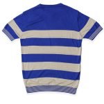 Blue and grey striped knitwear t-shirt in cotton with rib-trimmed and round neckline. Elasticated and striped trims. 100% Cotton. Slim fit for a more stylish look.