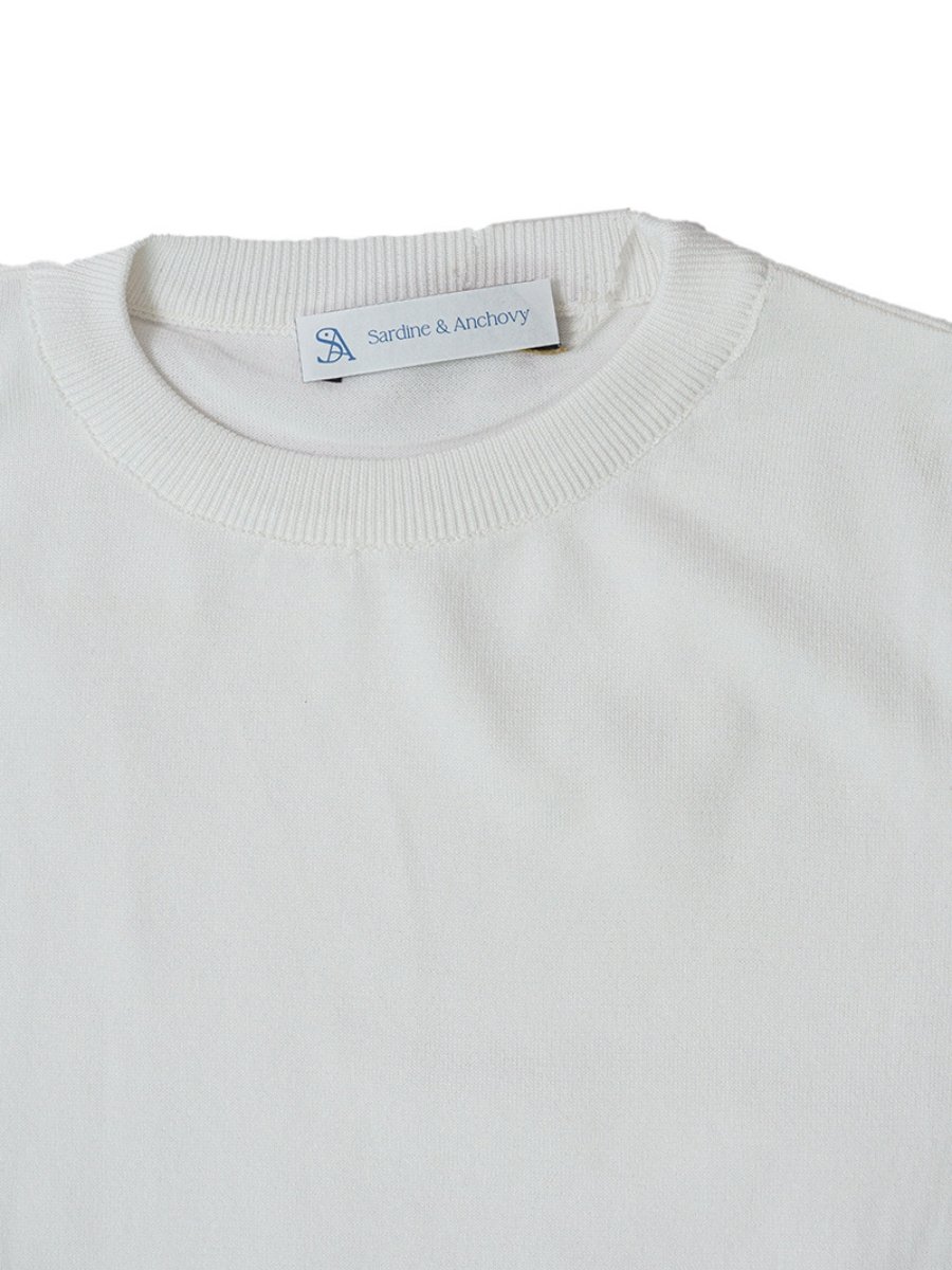 White knitwear t-shirt with rib-trimmed and round collar. Elasticated trims. Slim fit for a more stylish look. 100% polyamide for comfort and coolness.