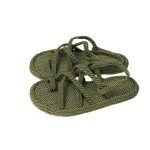 Dark green rope sandals. Feature adjustable cord on heel for comfort.